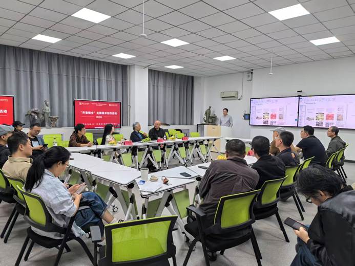研讨会上,唐勇力教授在全面了解项目情况后,对项目的选题立意和阶段性成果给予了充分肯定。他认真细致地点评了每一件作品,围绕作品的主题凝练、构图语言与技法表现等核心维度,与创作团队成员进行了深入剖析和交流,并提出宝贵建议。他特别强调,创作必须紧扣“齐鲁粮仓”的核心主题,突出“齐鲁”特色,创作素材应真实反映新时代山东农业的壮丽景观,使作品兼具艺术高度与时代精神。袁玲玲教授和杨斌教授也从不同角度提出了宝贵的建设性意见。