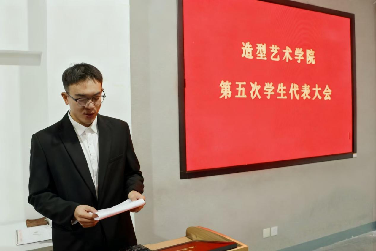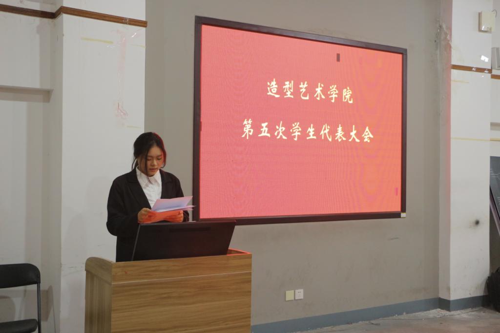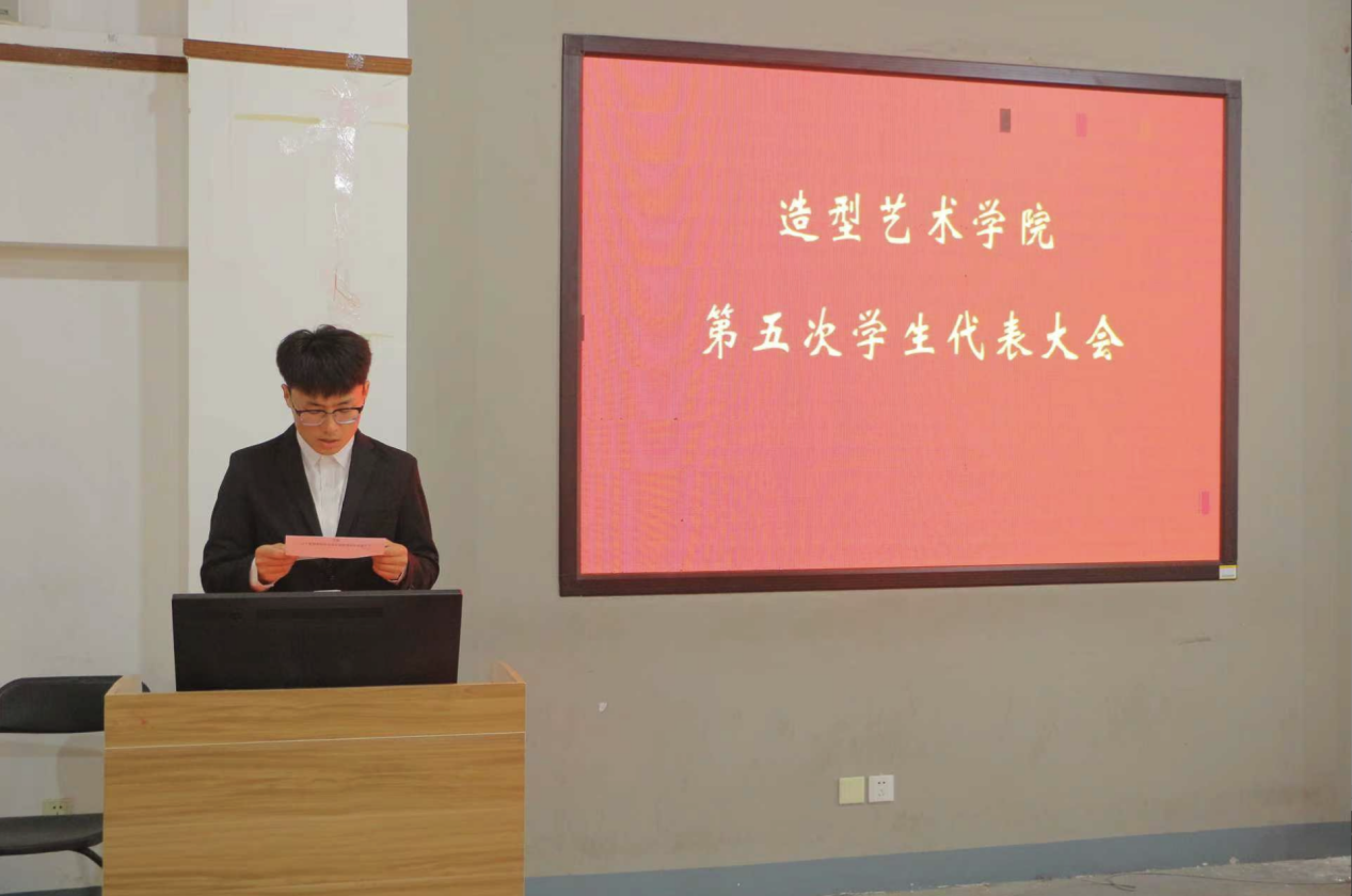 主持人张佳霖宣布造型艺术学院第五次学生代表大会开幕,全体起立,演奏国歌。