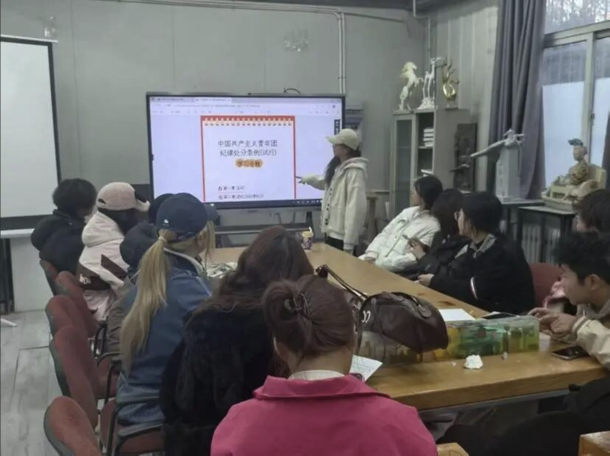 为深入学习贯彻党的二十届四中全会和全国教育大会精神,强化团员意识、严明组织纪律。11月18日,造型艺术学院围绕“团纪在心,青春奋进”开展系列教育活动。学院团总支组织委员赵怡然、宣传委员於永卓主讲,带领2025级新生学习共青团发展历程、入团标准及团纪处分规则。11月19日,各团支部开展同主题团日活动,团支书围绕团纪开展导学,带领团员重温《团章》条款、入团誓词及典型事迹。此次系列活动深化了新生对党团组织的认识,让“团纪在心”真正融入思想深处,新生们表示将以严明纪律约束自身行为,以昂扬姿态在民族复兴征程中书写青春华章。