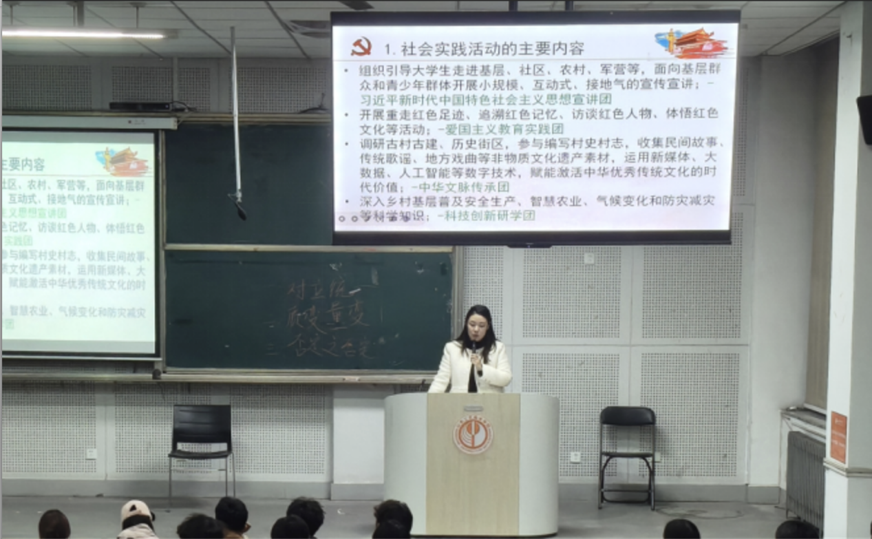 11月24日,造型艺术学院在十合堂为2025级新生开展暑假社会实践交流专题团课。由学院团总支实践创新委员王健宇、青年委员宋冠宁、学习委员殷晓涵主讲,旨在引导新生将理论知识与社会实践相结合,增强社会责任感与实践能力。期间,王健宇拆解了社会实践的全流程,殷晓涵介绍了实践涵盖的具体内容,宋冠宁分享了学院过往在乡村振兴等领域的实践成果。此次团课让新生深刻认识到社会实践的重要价值,大家表示将以知行合一的行动践行青年担当,锤炼过硬本领。