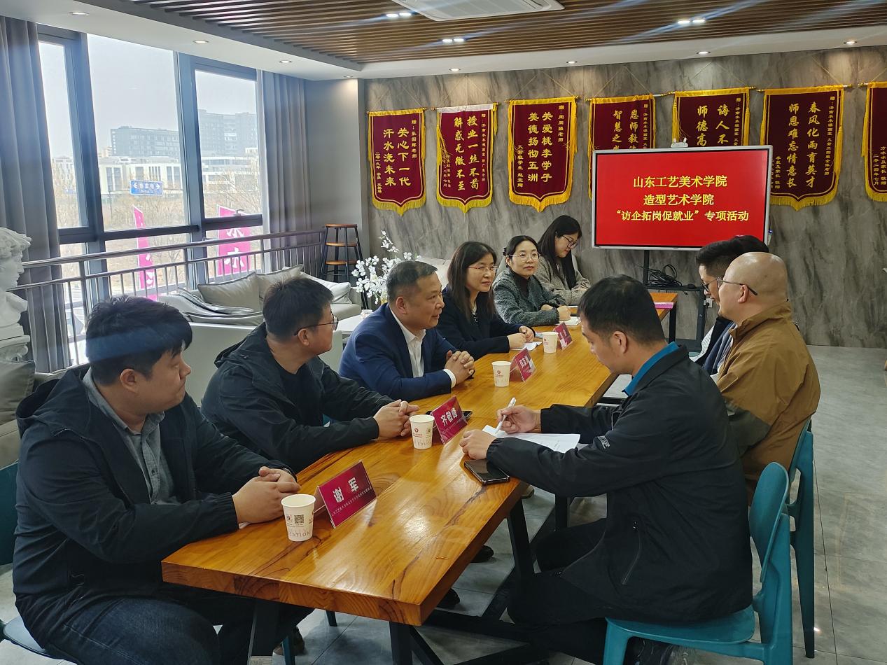 为深入贯彻2026届全国普通高校毕业生就业创业工作会议精神,进一步拓宽毕业生就业渠道和资源,3月23日,山东工艺美术学院党委委员、组织部部长弭友海带队赴济南水木源教育科技有限公司、山东传承教育集团,开展访企拓岗促就业专项行动。造型艺术学院领导班子成员、毕业班辅导员陪同走访。