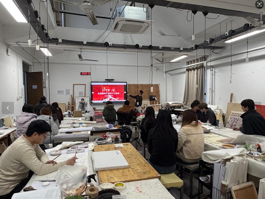 学习党的创新理论是青年学子坚定理想信念、明确奋斗方向的必修课。同学们通过集中收看、学习研讨、心得分享等多种形式,认真学习领会全国两会精神。围绕政府工作报告提出的关于“深入实施中华优秀传统文化传承发展工程”等重要部署,同学们展开热烈讨论并一致认为,作为新时代的艺术青年,要深刻理解文化强国的时代内涵,坚定文化自信,努力创作出更多反映时代精神、彰显中国气派的优秀作品,勇担新时代赋予的文化使命。